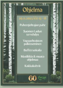 Vantaan Latu ja Polku ry on liikuttanut vantaalaisia vapaaehtoisvoimin jo kuusikymmentä vuotta. Yhdistys on perustettu 4.2.1965. Pitkin vuotta on järjestetty erilaisia juhlavuoden ulkoilutapahtumia. Vuoden huipentumana kokoonnuttiin viettämään iloista 60-vuotisjuhlaa Ilolan seurakuntatalolle lauantaina 29.11. Ohjelmassa oli pieniä puheita, vapaaehtoisten palkitseminen, musiikkiesityksiä, historiavisailu, hyvää ruokaa ja tietysti kakkukahvit. Huomionosoituksia ansioituneille vapaaehtoisille Juhlassa jaettiin Suomen Ladun myöntämiä huomionosoituksia […][Lue lisää »]