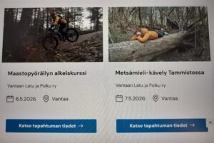 Suomen Latu julkaisi uudistetut verkkosivut 15.4. Linkitys tapahtumakalenterista meidän Tapahtumat-sivullemme ei valitettavasti toimi tällä hetkellä. Lähiajan tulevat tapahtumamme pääset katsomaan tästä linkistä Tapahtumat (koko vuosi) -sivu toimii normaalisti. Pahoittelemme häiriötä![Lue lisää »]