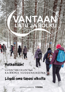 Vuoden ensimmäinen jäsentiedote on valmistunut ja luettavissa täällä verkkosivuilla. Jäsentiedotetta on painettu pieni määrä kevätkauden tapahtumiin, ja se on jaossa myös Bisan majalla. Tutustu tulevaan toimintaan ja katso, mihin lähdet mukaan! Lehdessä on esittelyssä yhdistyksen hallituksen uusi puheenjohtaja Tuomas Erkkilä. Voit myös mm. lukea, mitä Mirja Olin ajattelee vapaaehtoistyöstä, jota hän on tehnyt Vantaan Ladun […][Lue lisää »]
